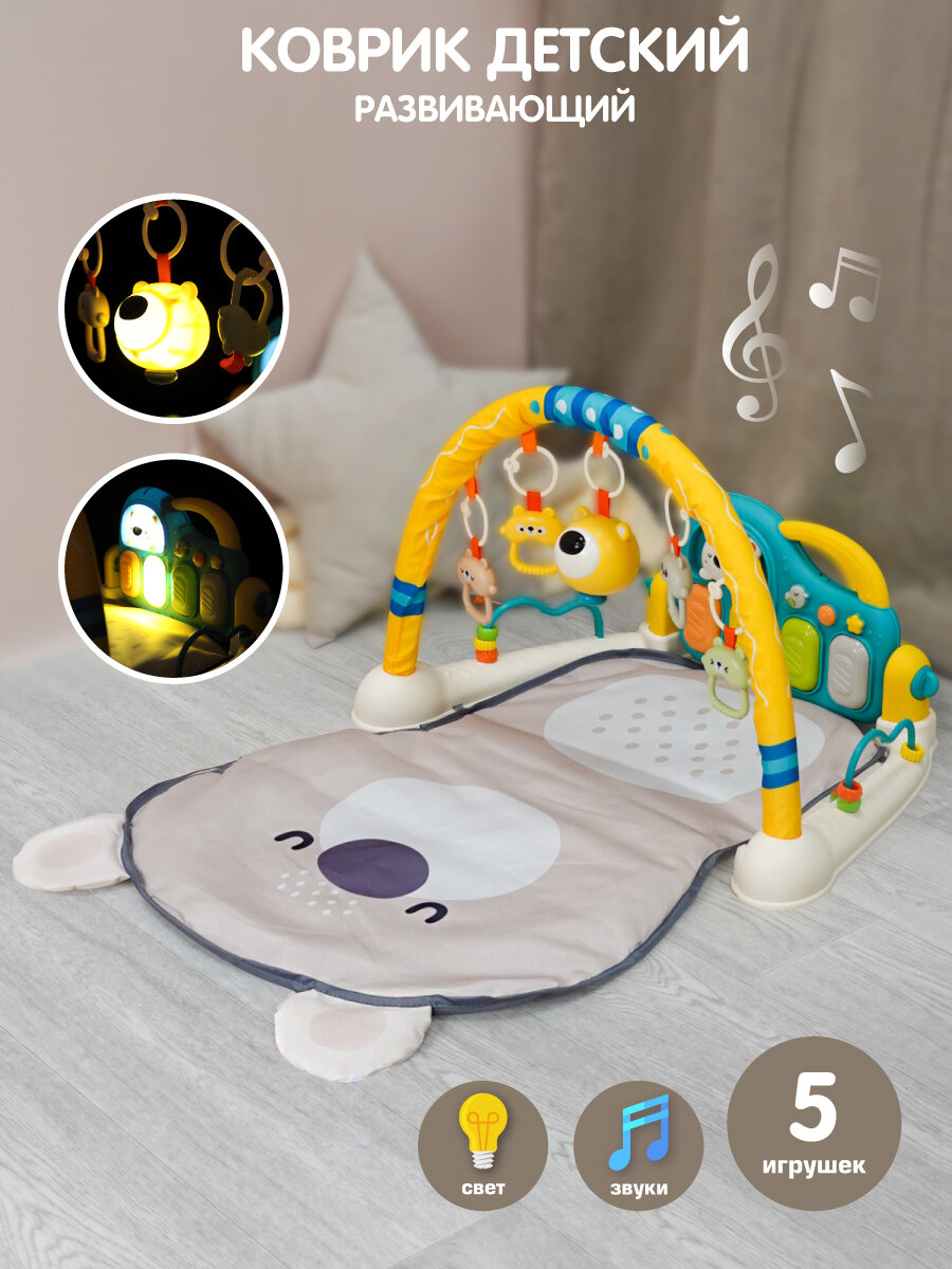 10 цен на Развивающий детский коврик "Медвежонок", звук, свет, с дугами