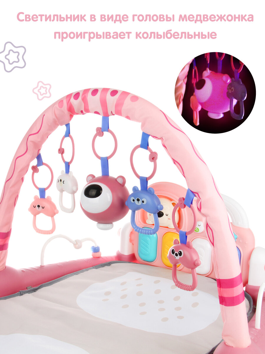 Музыкальный коврик ZABIAKA развивающий со звуком, розовый