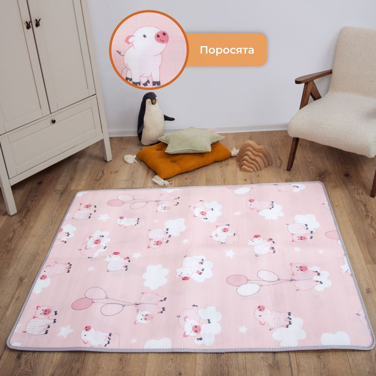 Развивающий коврик детский Mamagoods для ползания складной игровой 120x150 см Поросята и совушки информация:
