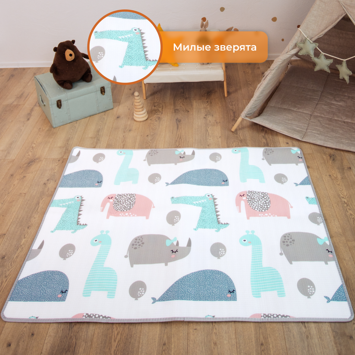 Развивающий коврик детский Mamagoods для ползания складной игровой 120x150 см Поросята и совушки 1 173 ₽