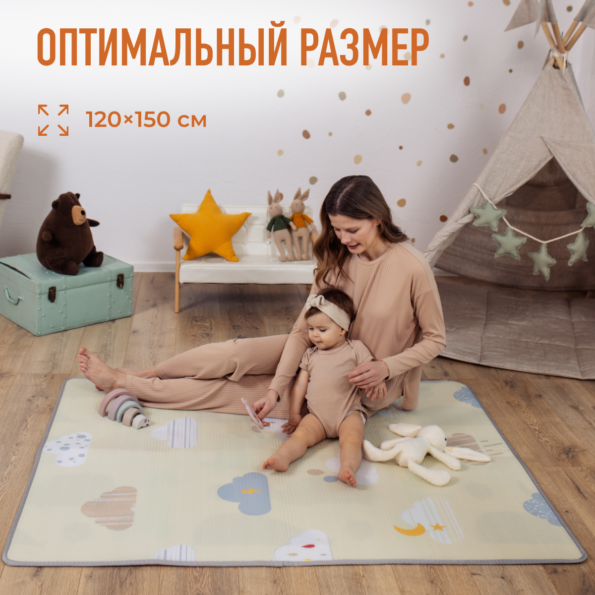 Отзывы на Развивающий коврик детский Mamagoods для ползания складной игровой 120x150 см Нежные облачка