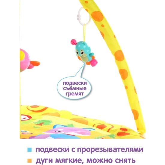 Игрушка Коврик мягкий,4 подвесные погремушки с элементами прорезывателя, съемные дуги, IT106281