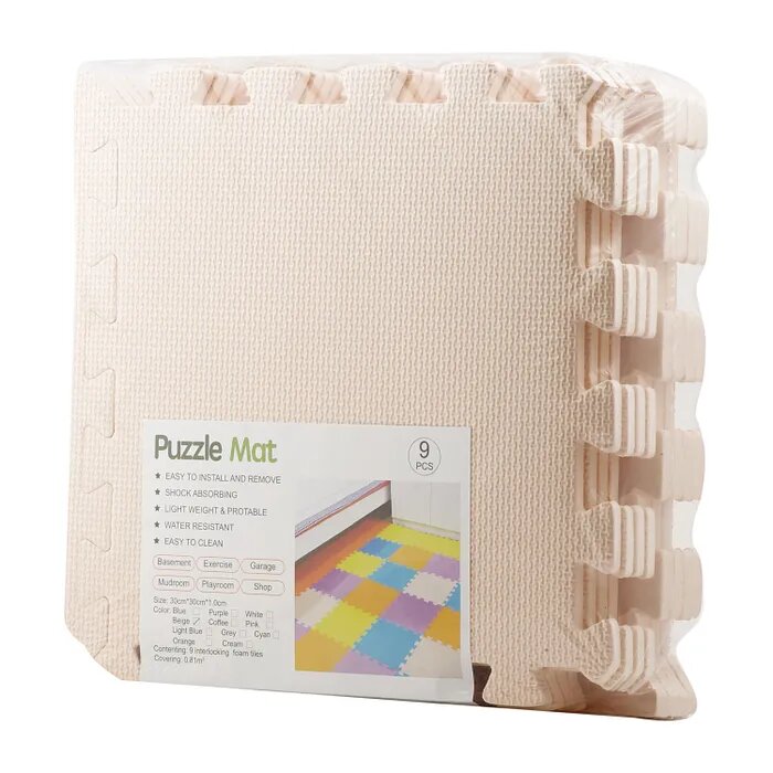 Отзывы на Коврик пазл детский WellMat Бежевый 30x30x1 см 9 шт. с окантовкой игровой развивающий для ползания