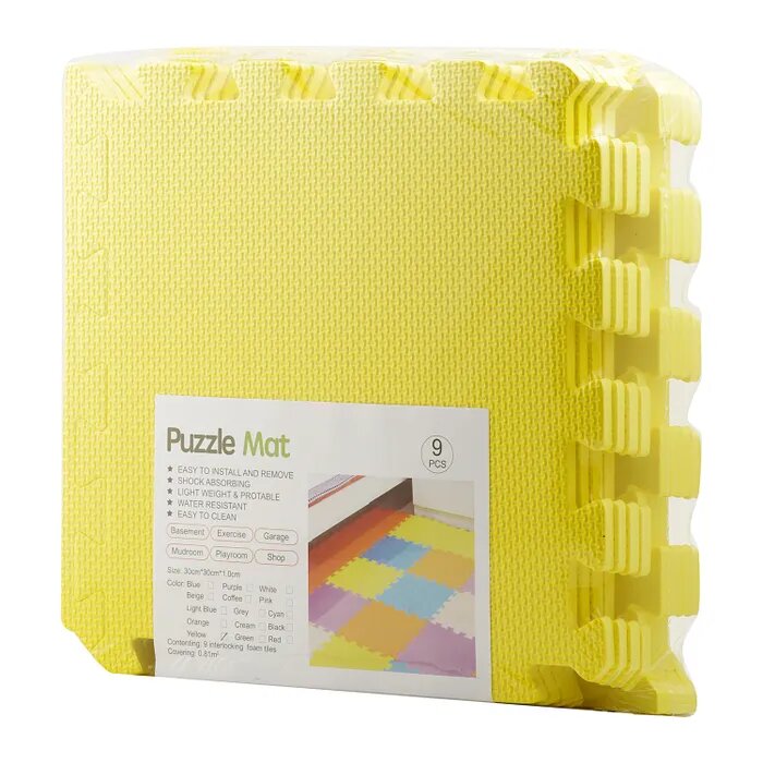 10 цен на Коврик пазл детский WellMat Жёлтый 30x30x1 см 9 шт с окантовкой игровой развивающий для ползания