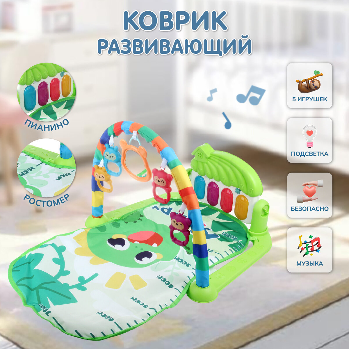 Развивающий коврик с пианино тотоша музыкальный ковер с дугой и съемными игрушками крафт