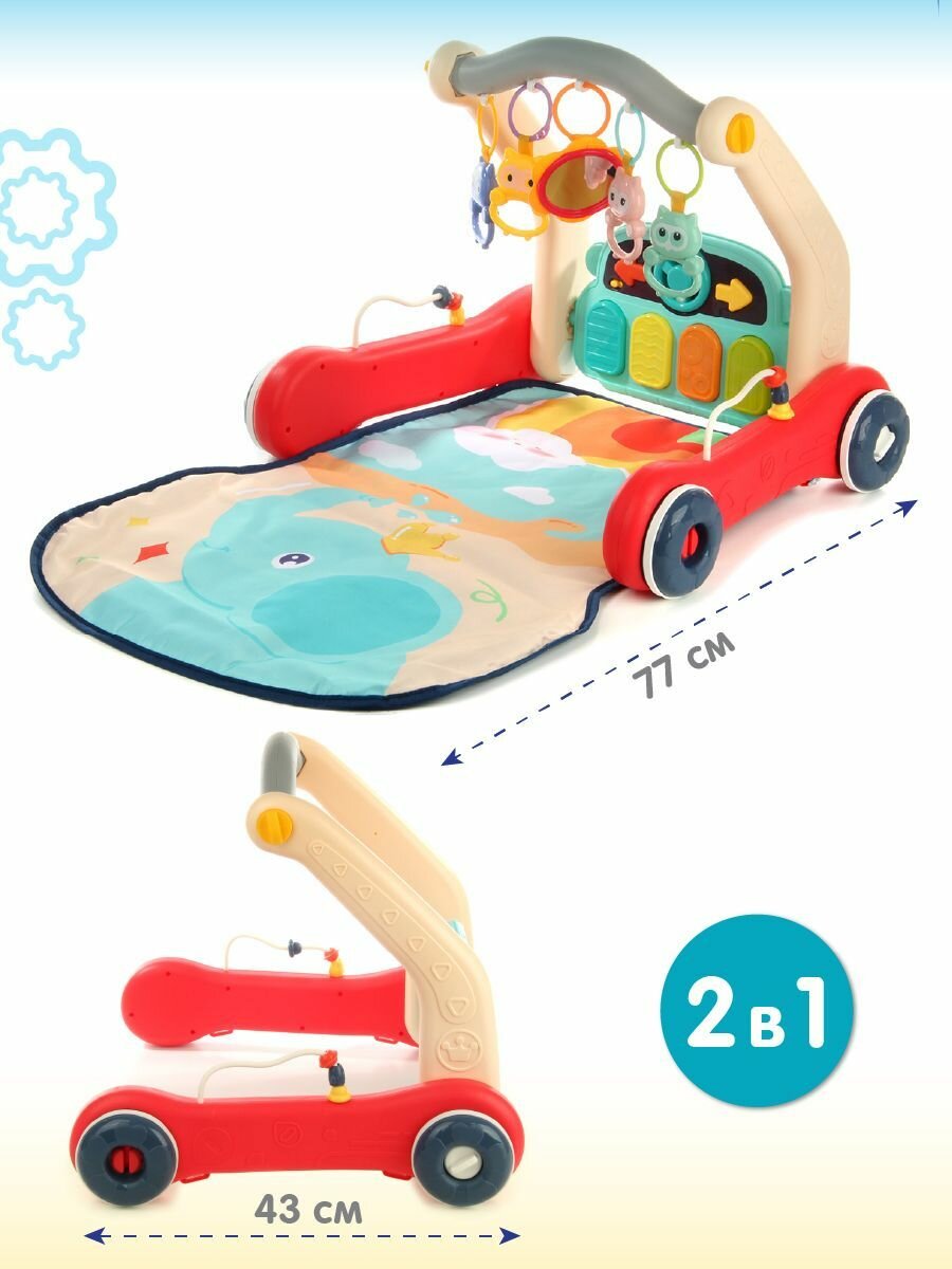Детские ходунки каталки 2 в 1 со светом и звуком, Veld Co / Развивающий бизиборд для детей / Игровой коврик для малышей информация: