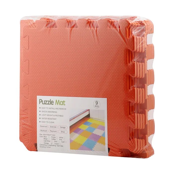 10 цен на Коврик пазл детский WellMat Оранжевый 30x30x1 см 9 шт. с окантовкой игровой развивающий для ползания