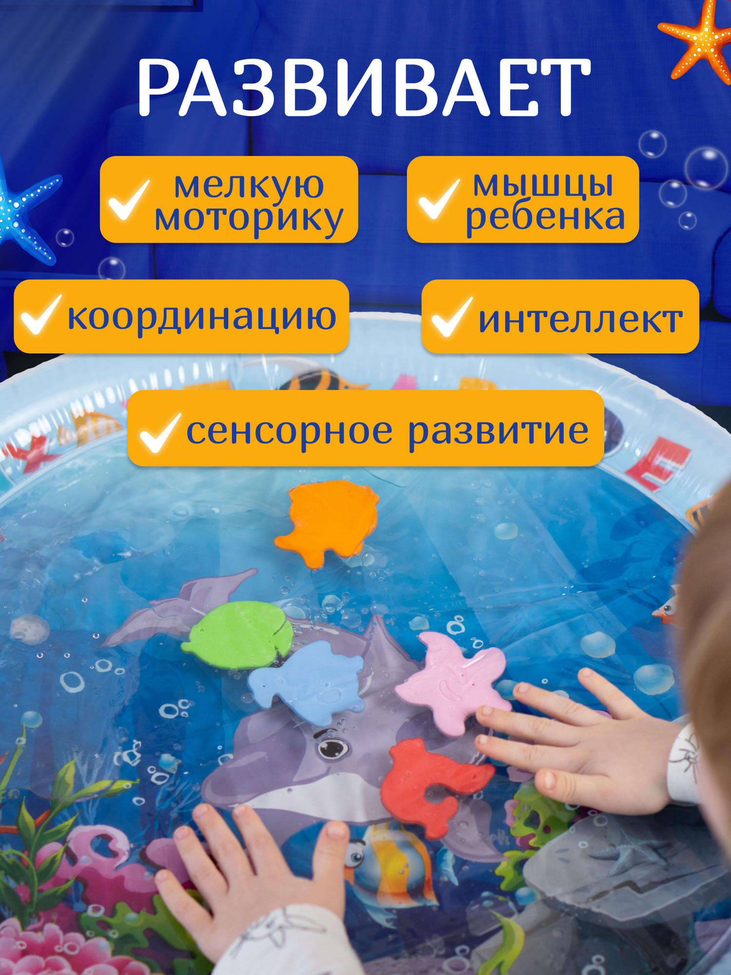 Акваковрик, детский развивающий водный коврик Осьминожка, игровой надувной, Морские чудеса
