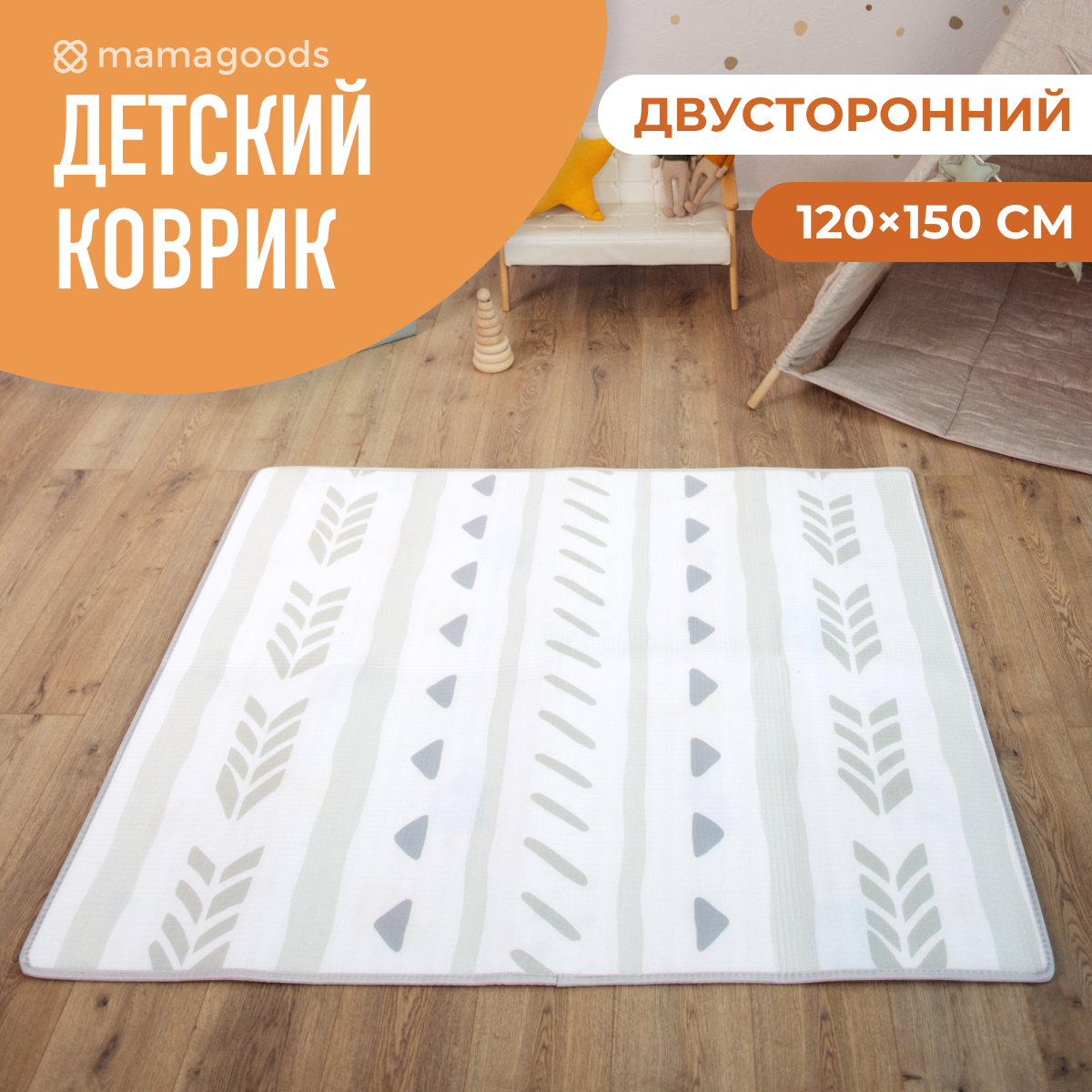 Развивающий коврик детский для ползания Mamagoods 120x150 см Жирафики и абстрактный дизайн информация: