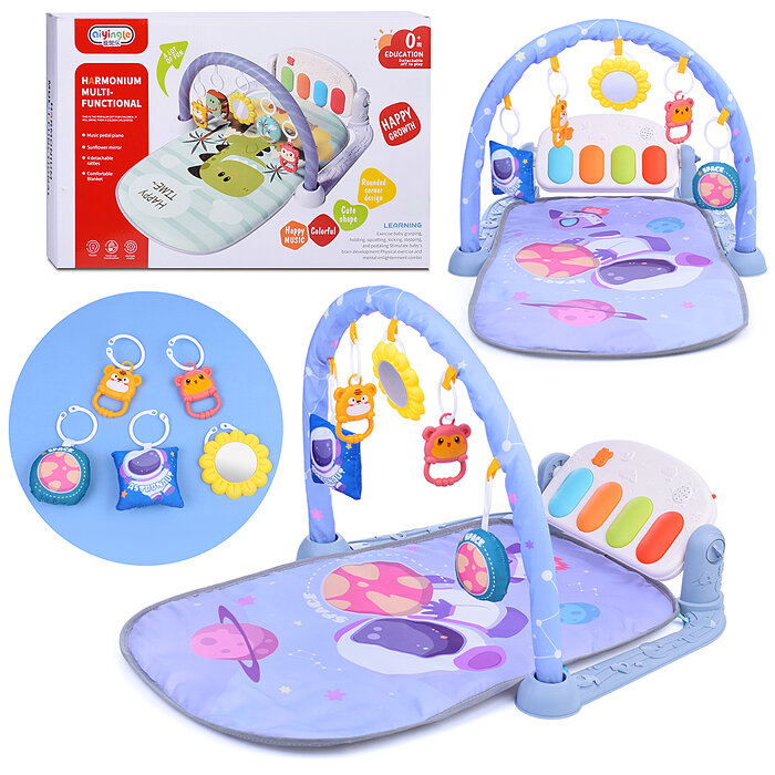 Коврик развивающий Oubaoloon "Бегемотик", музыкальный, с пианино, синий