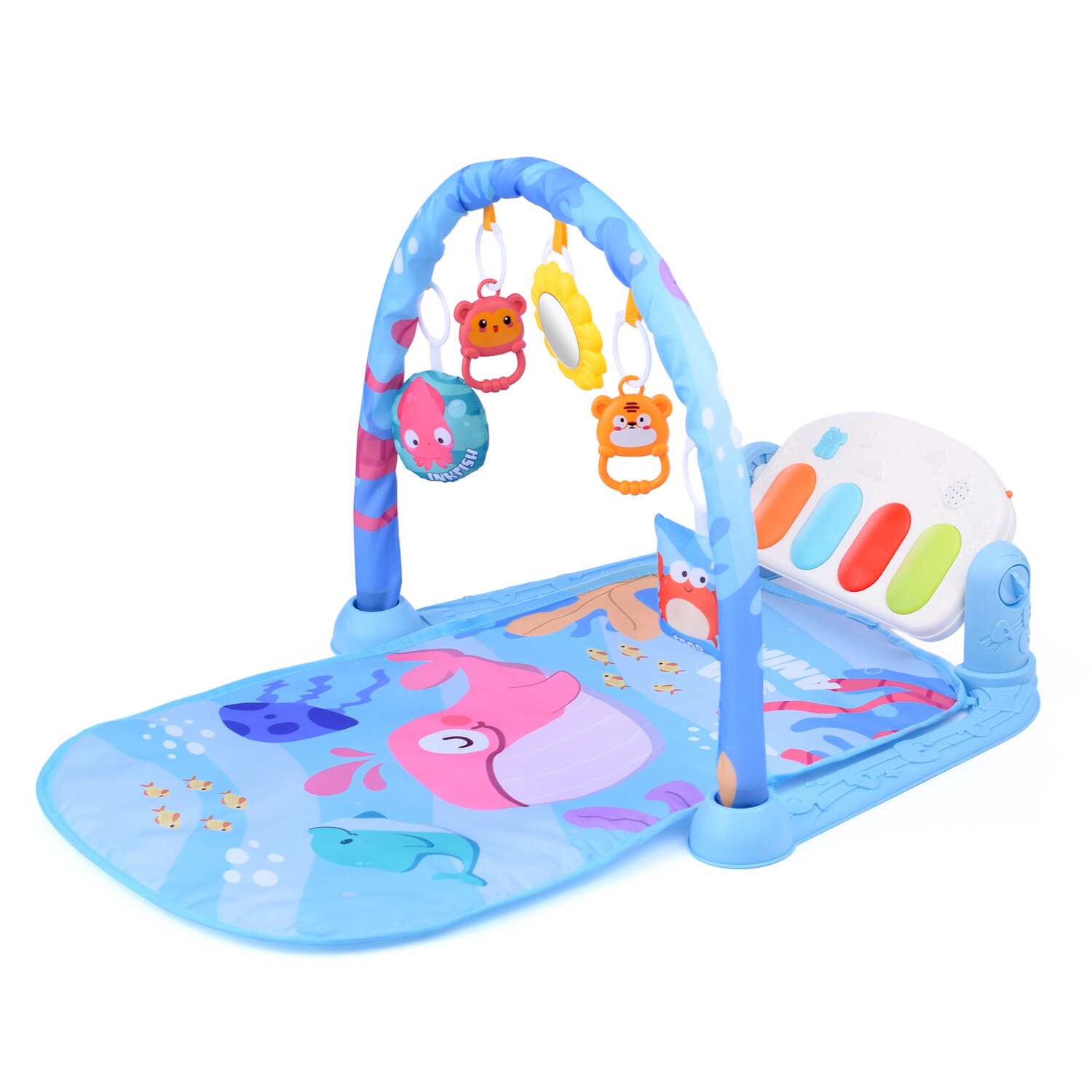 Коврик развивающий Oubaoloon "Бегемотик", музыкальный, с пианино, синий