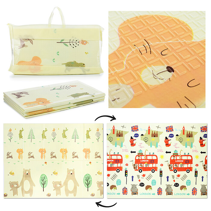Складной двухсторонний мягкий развивающий игровой детский Коврик / Термоковрик для малышей в сумке Oubaoloon 00-1200 (150*180*0.8cm)