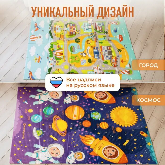 10 цен на Развивающий коврик детский Mamagoods 120х180 см Космическая Одиссея и Карта Города