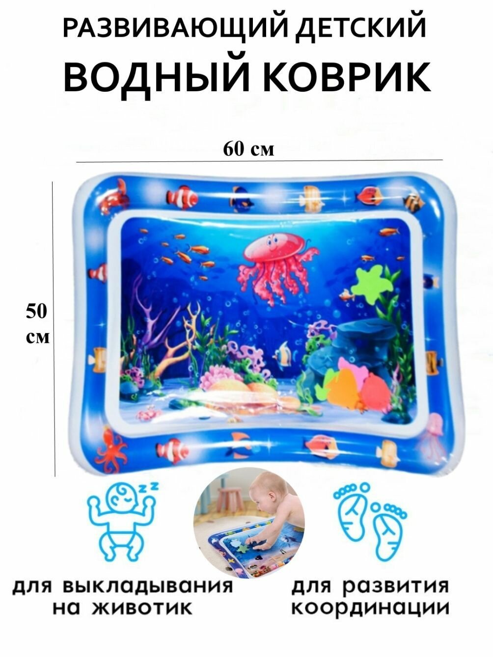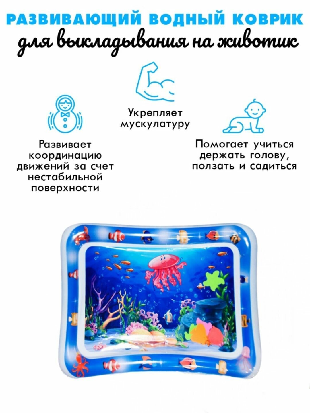 Детский игровой водный коврик с морскими животными, развивающий, для выкладывания на животик, для малышей информация: