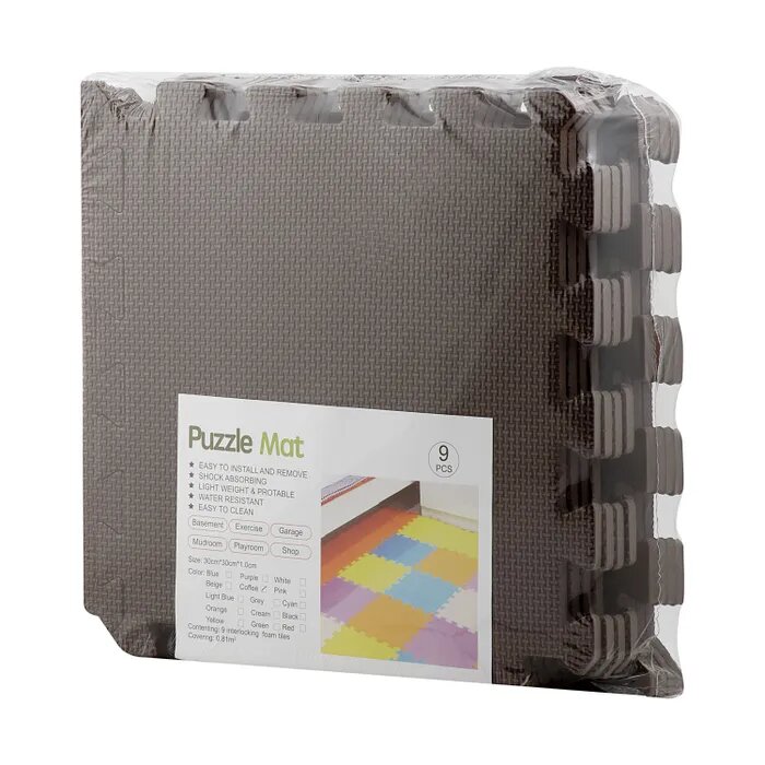 10 цен на Коврик пазл детский WellMat Коричневый 30x30x1 см 9 шт с окантовкой игровой развивающий для ползания