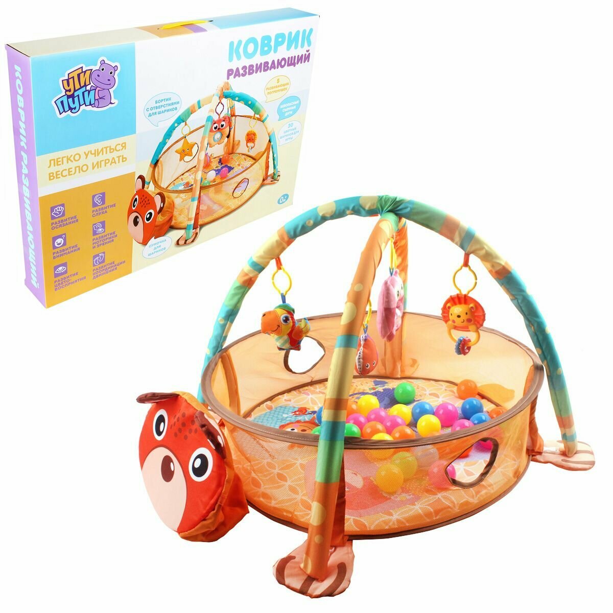 Развивающий игровой коврик для новорожденных, Ути Пути / Детский манеж, дуга с игрушками для малышей / Подвесные погремушки для детей