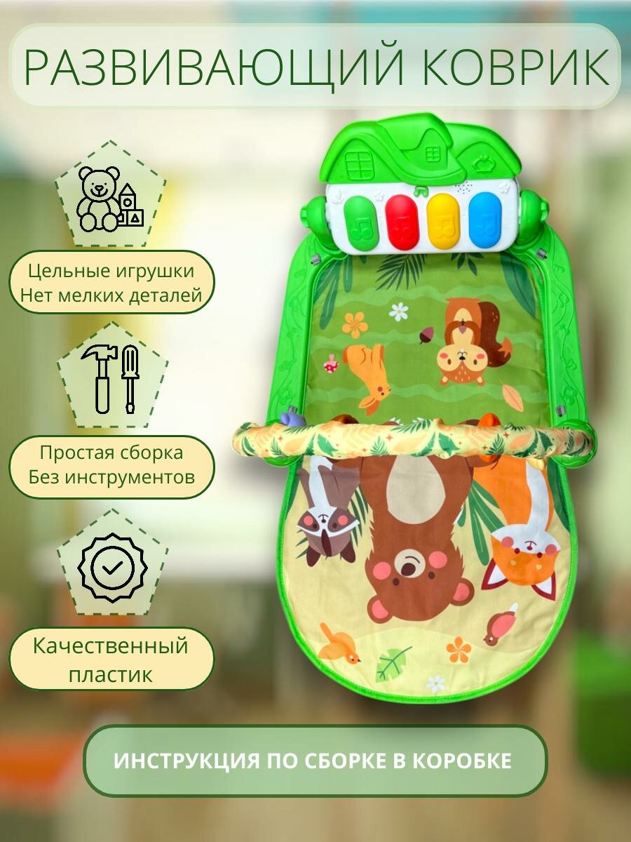 Коврик развивающий для детей, с пианино и погремушками, со звуком и светом, игровой центр, игрушки для новорожденных до трех лет. Цвет зеленый. информация: