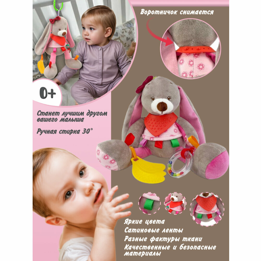 Игрушка для развития малыша мягкая Подвеска Зайка, погремушка с прорезывателем для новорожденного в кроватку, на коляску, 15 х 9 х 28 см, KYB22F-004 информация: