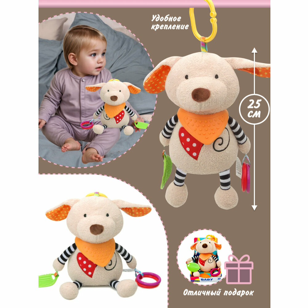 Подвеска на коляску погремушка мягкая Собачка 17 х 24 х 5 см, KYB22D-008 862 ₽