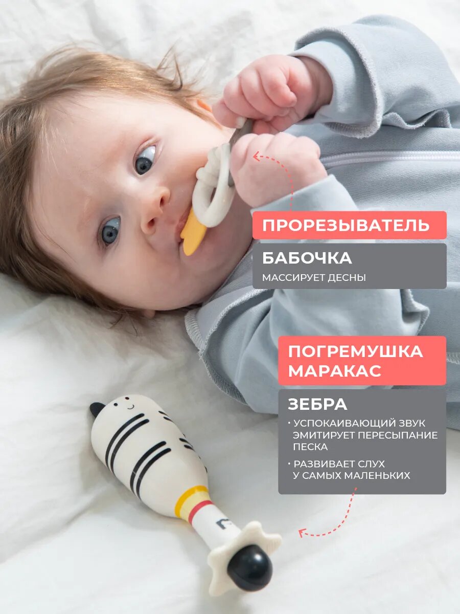 Отзывы на Набор игрушек MADEBYBEAR Savannah, погремушка + прорезыватель, 0+, 2 шт.
