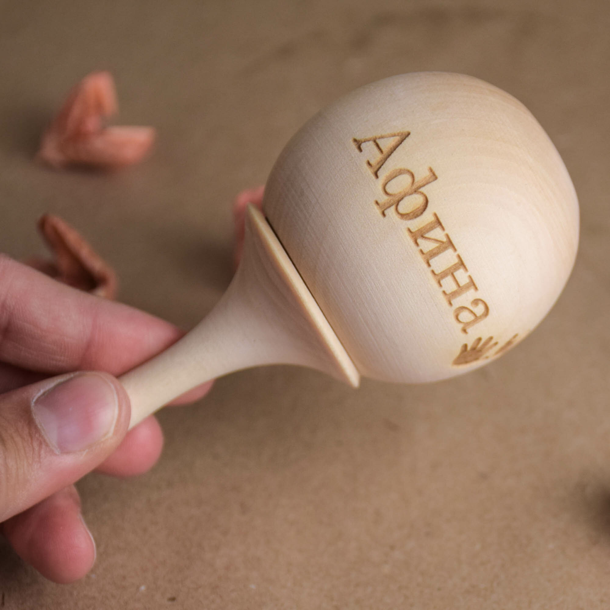 Игрушка Погремушка Маракас Деревянная для Новорожденного с Вашей Гравировкой