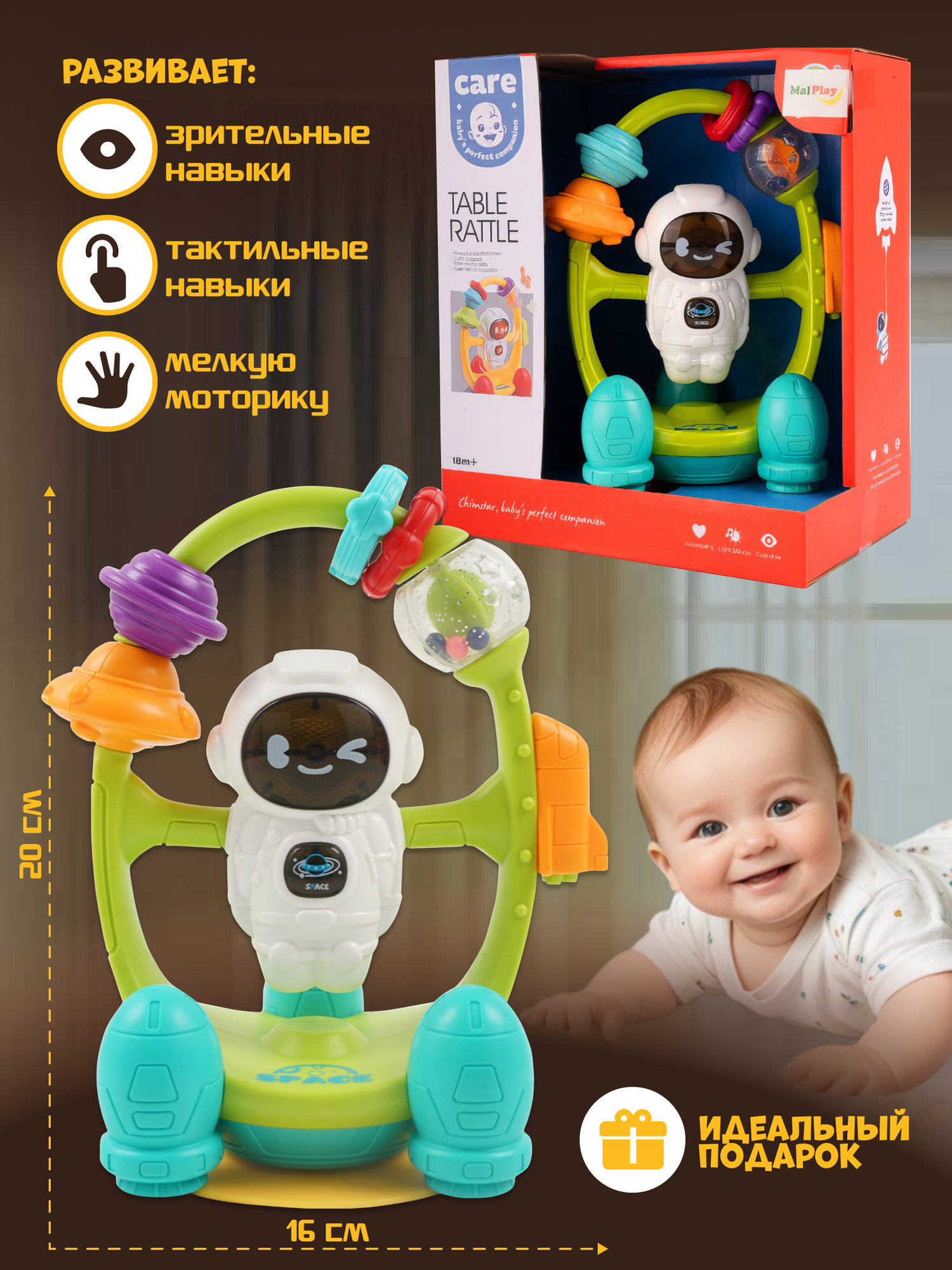 10 цен на Музыкальная погремушка Космонавт на присоске 16х11,5х20 см, на батарейках со светом и музыкой, 2 цвета