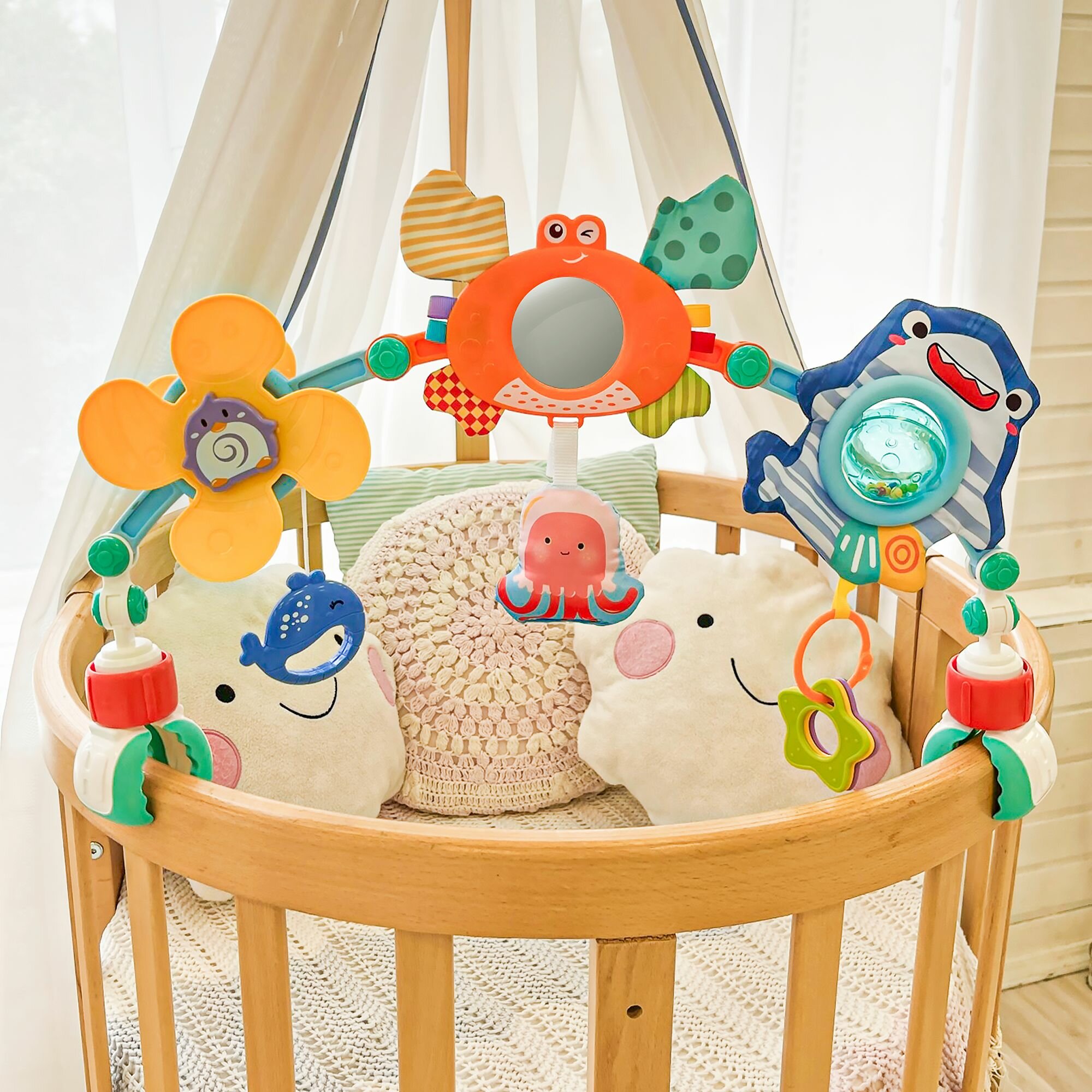 Дуга игровая SHARKTOYS "Океан", на коляску кроватку с подвесными игрушками информация: