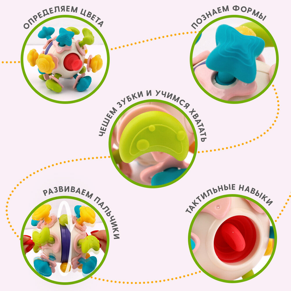 Отзывы на Погремушка-Прорезыватель "Шар", многофункциональная, силикон/пластик, желтый