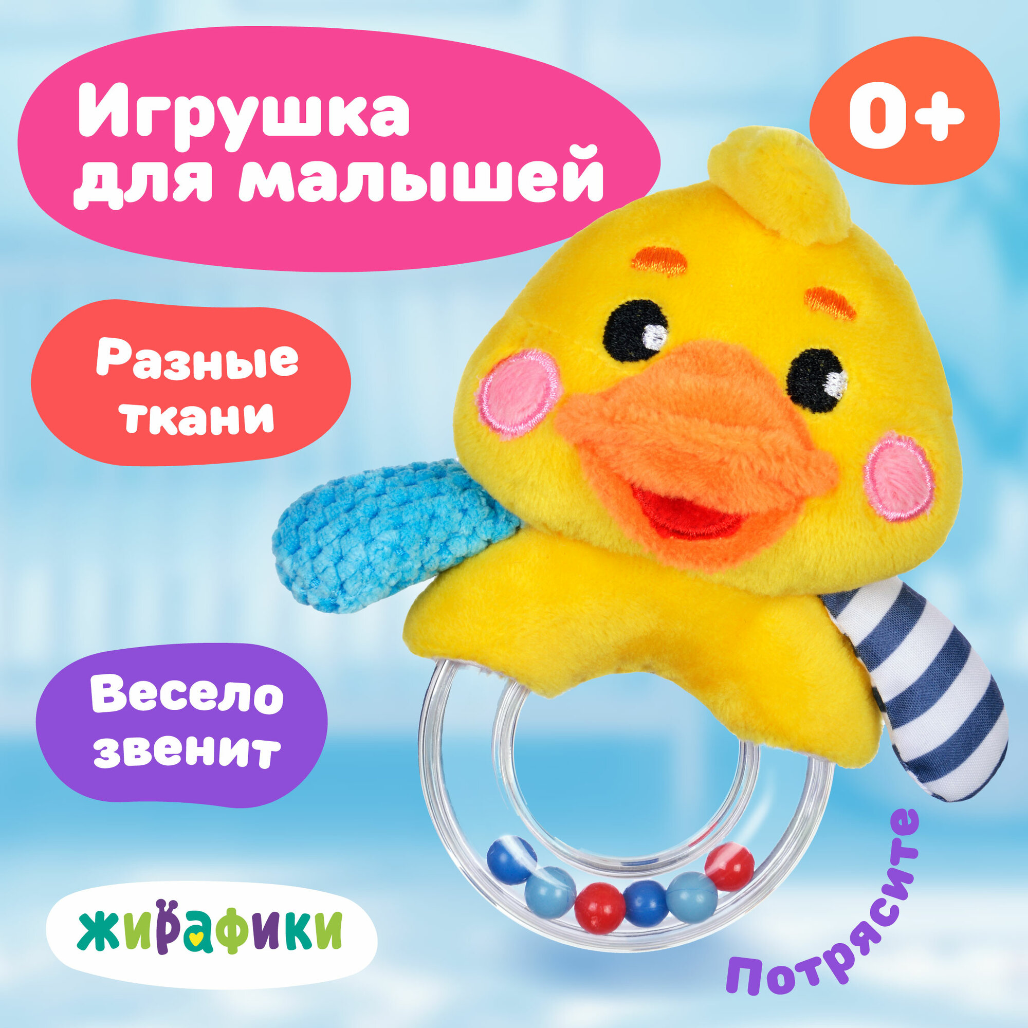 10 цен на Погремушка-кольца Жирафики "Утенок" для новорожденных, шуршалка, желтая