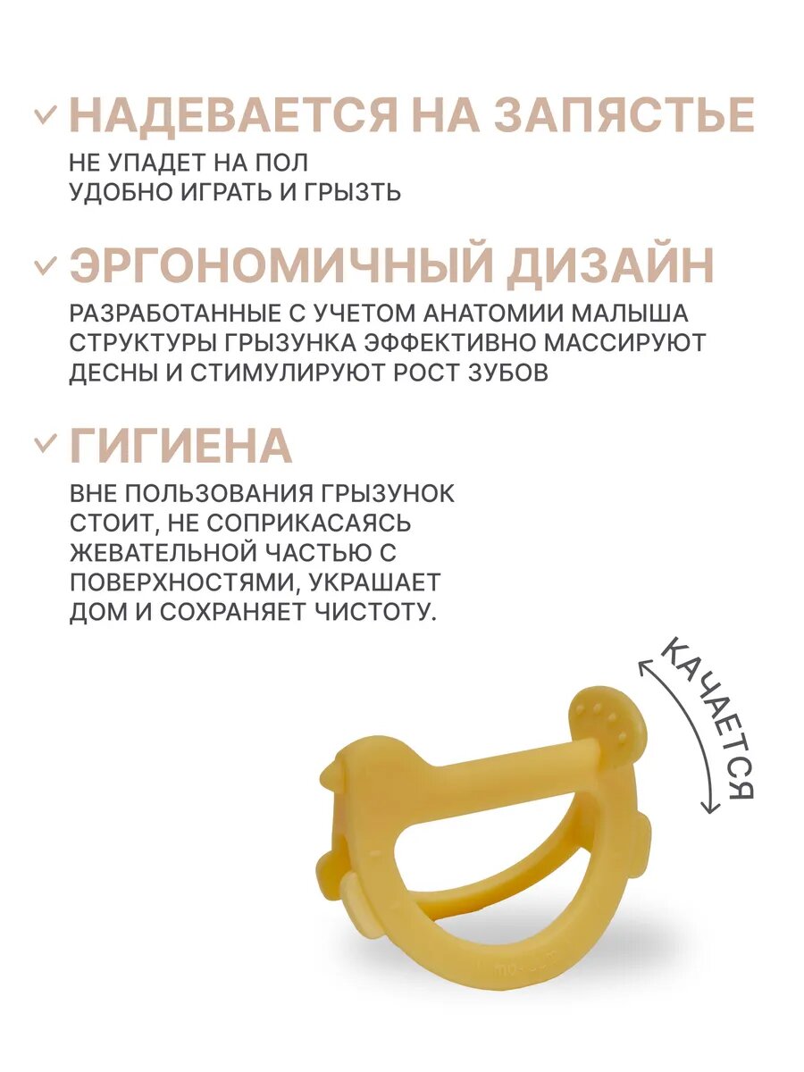 Прорезыватель для зубов грызунок MOYUUM "Птичка" платиновый силикон для детей от 3 месяцев, желтый информация: