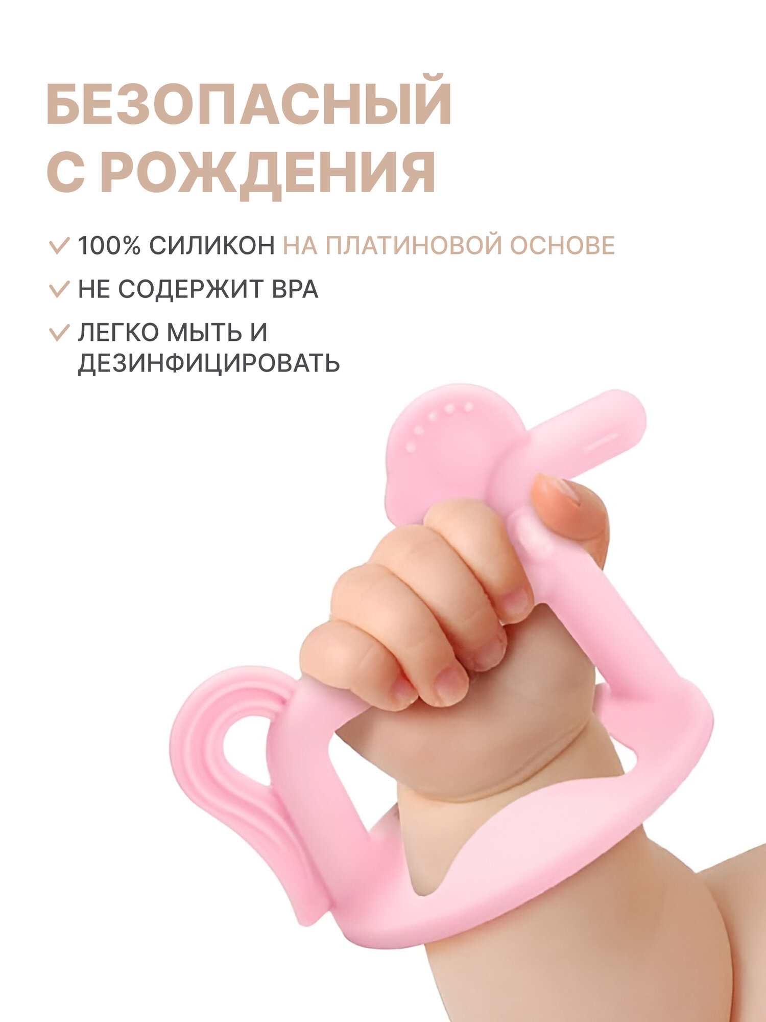 | Особенности | безопасная форма / грызунок-прорезыватель / на запястье |