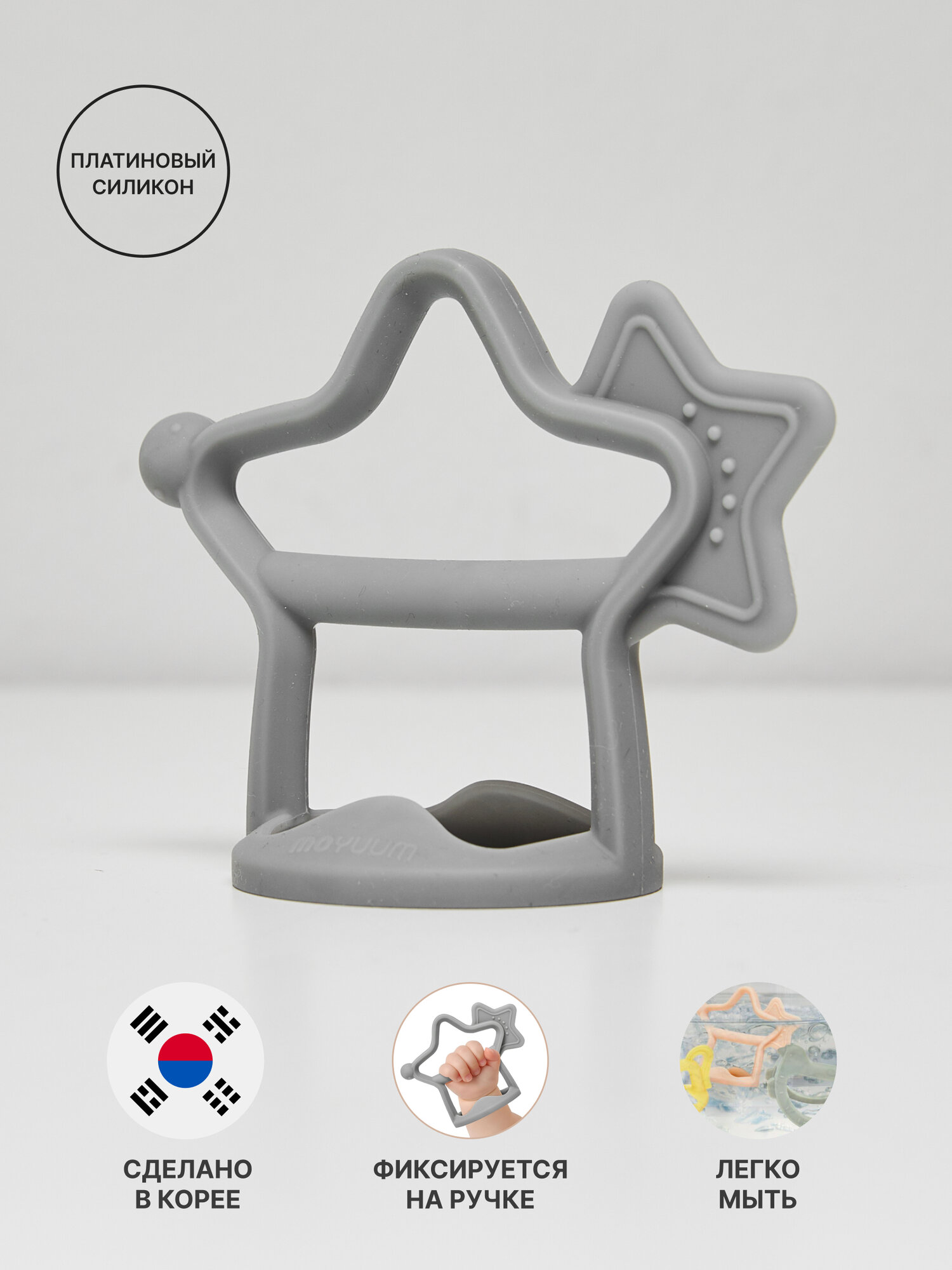 Прорезыватель для зубов грызунок MOYUUM "Звездочка" платиновый силикон для детей от 3 месяцев, серый информация: