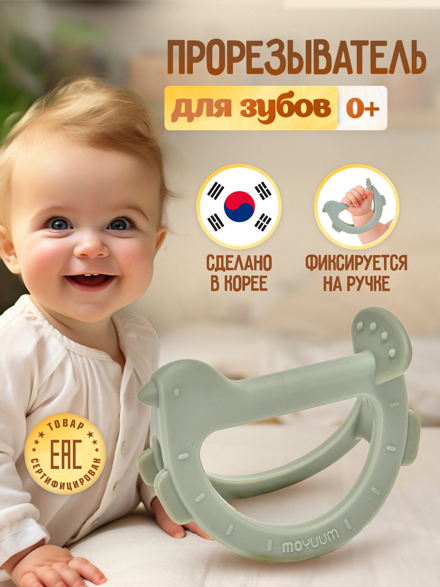 Отзывы на Прорезыватель для зубов грызунок MOYUUM "Птичка" платиновый силикон для детей от 3 месяцев, зеленый