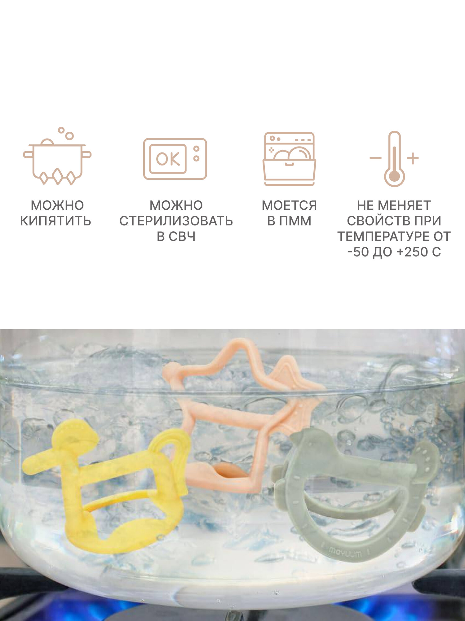 | Особенности | безопасная форма / грызунок-прорезыватель / на запястье |