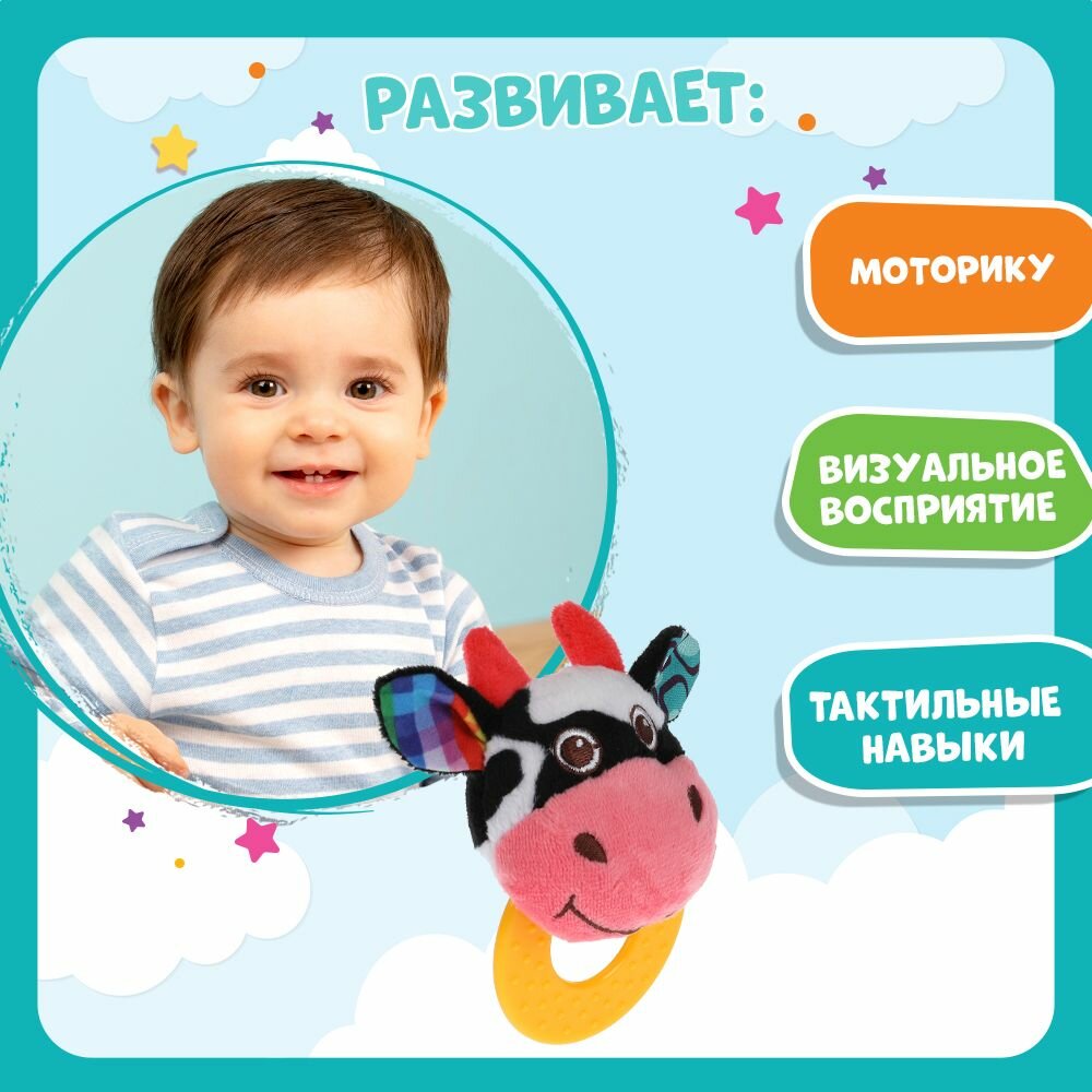 Текстильная игрушка погремушка Умка Корова с прорезывателем функциональная информация: