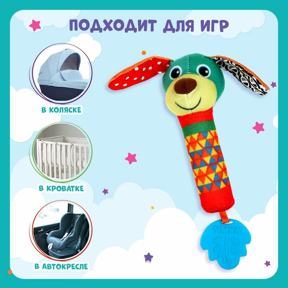 Игрушка погремушка для новорожденных мягкая пищалка Собачка Умка