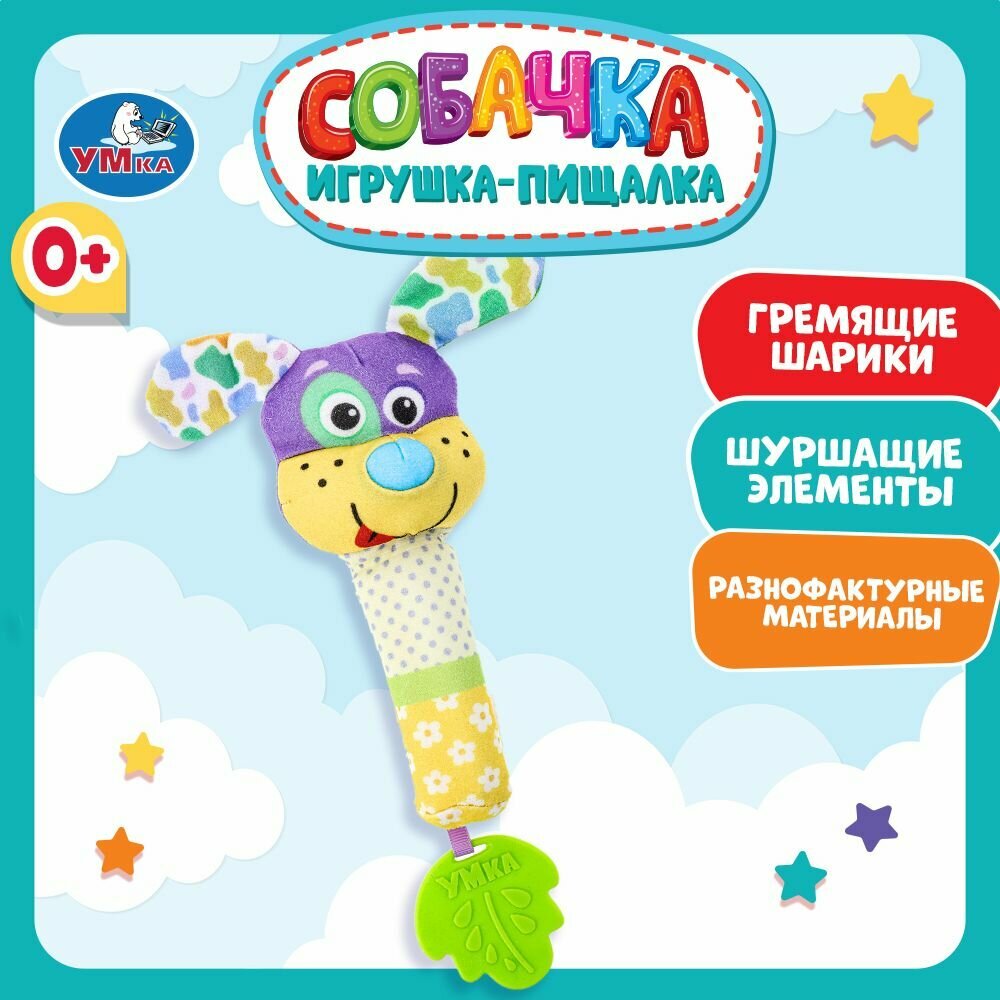 Игрушка погремушка для новорожденных мягкая пищалка Собачка Умка