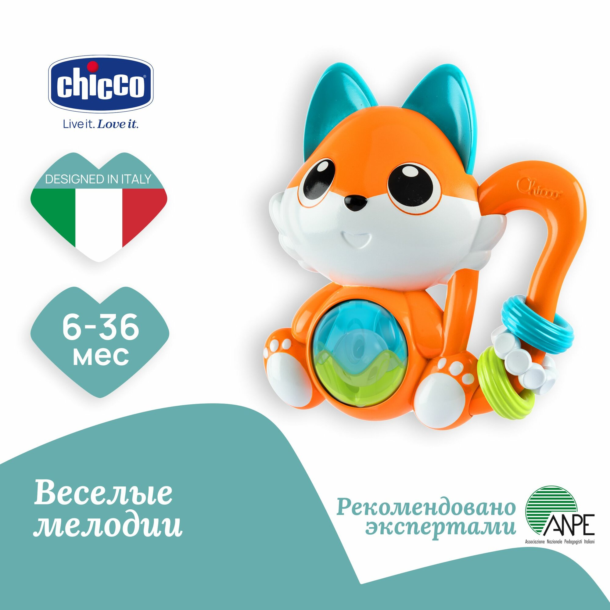 Детская игрушка погремушка прорезыватель для малышей "Лисичка" информация: