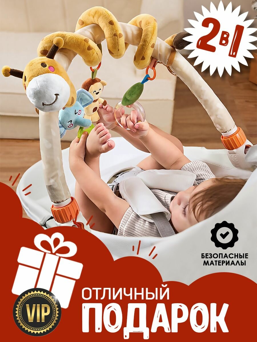Развивающая дуга с игрушками. Игрушки для новорожденных от 0. Cпираль растяжка на кроватку и коляску. Погремушка для новорожденного информация: