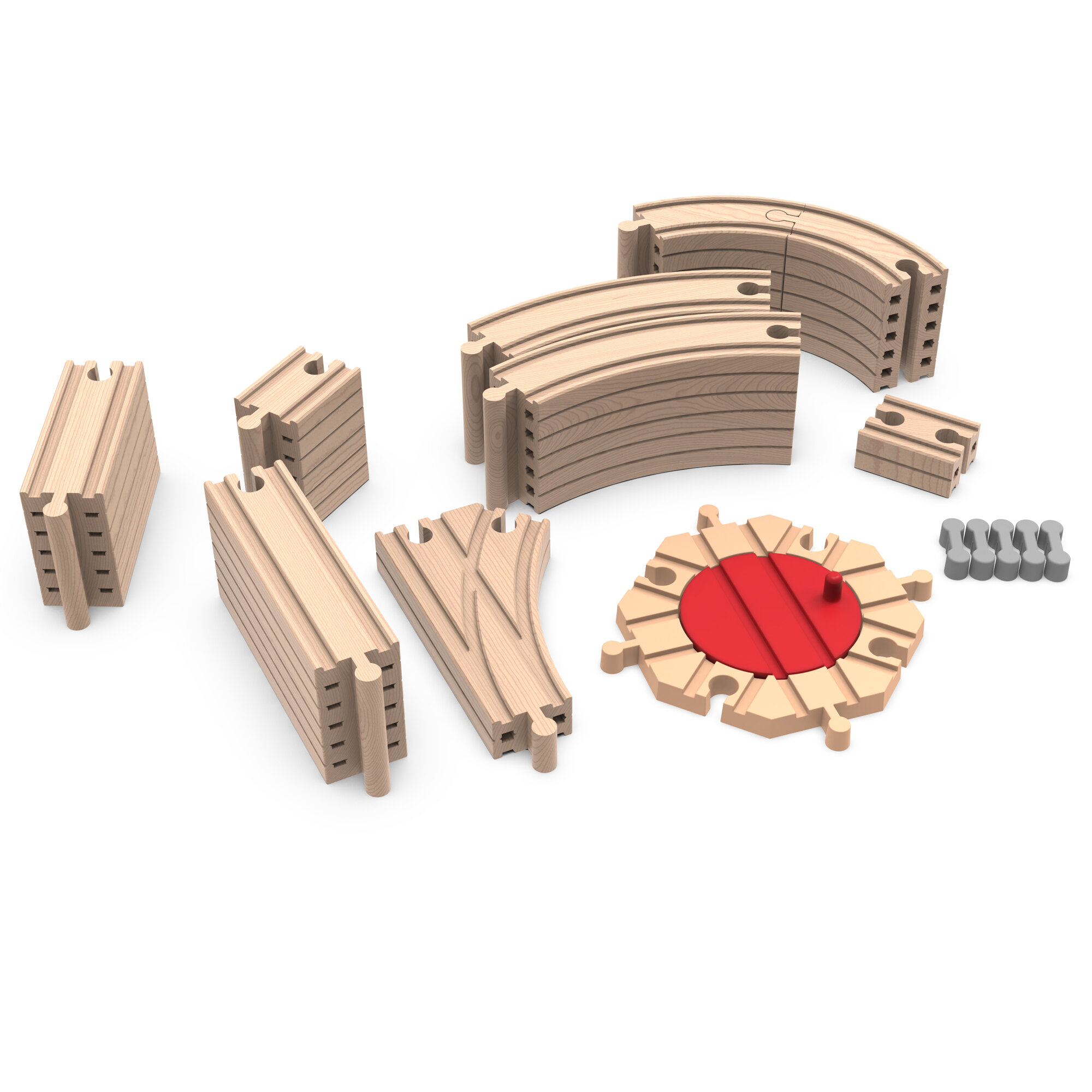 10 цен на Набор конструктора MykaFort (МикаФорт). Большой набор Б - 50 элементов рельсов деревянной "железной" дороги