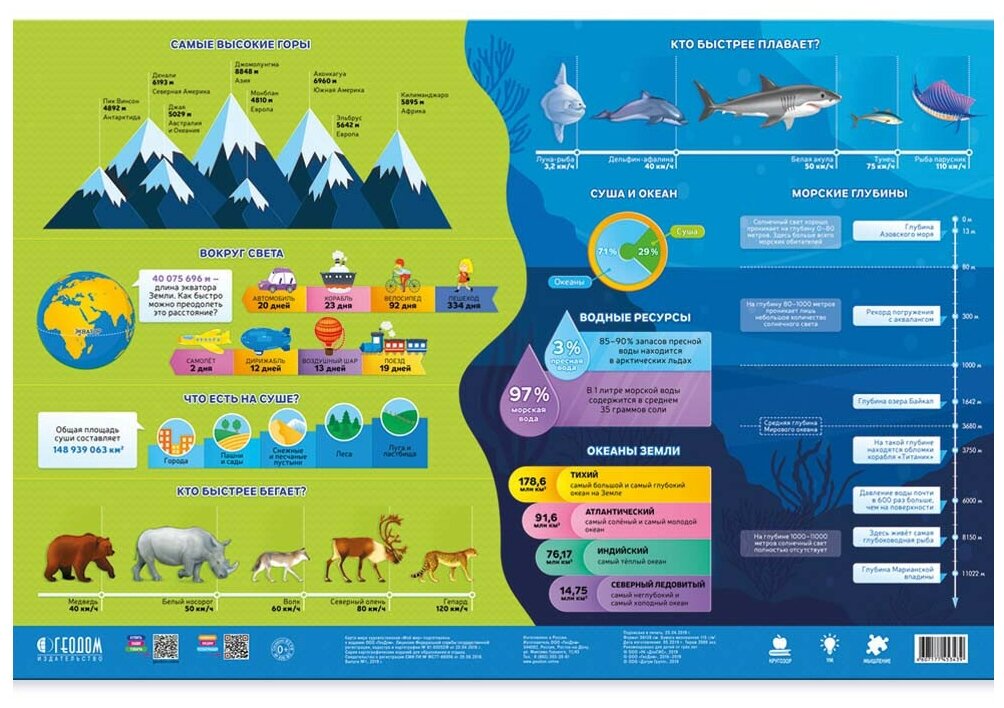 Карта Мира ламинированная настольная двухсторонняя Геодом "Мой мир" 58х38 см информация: