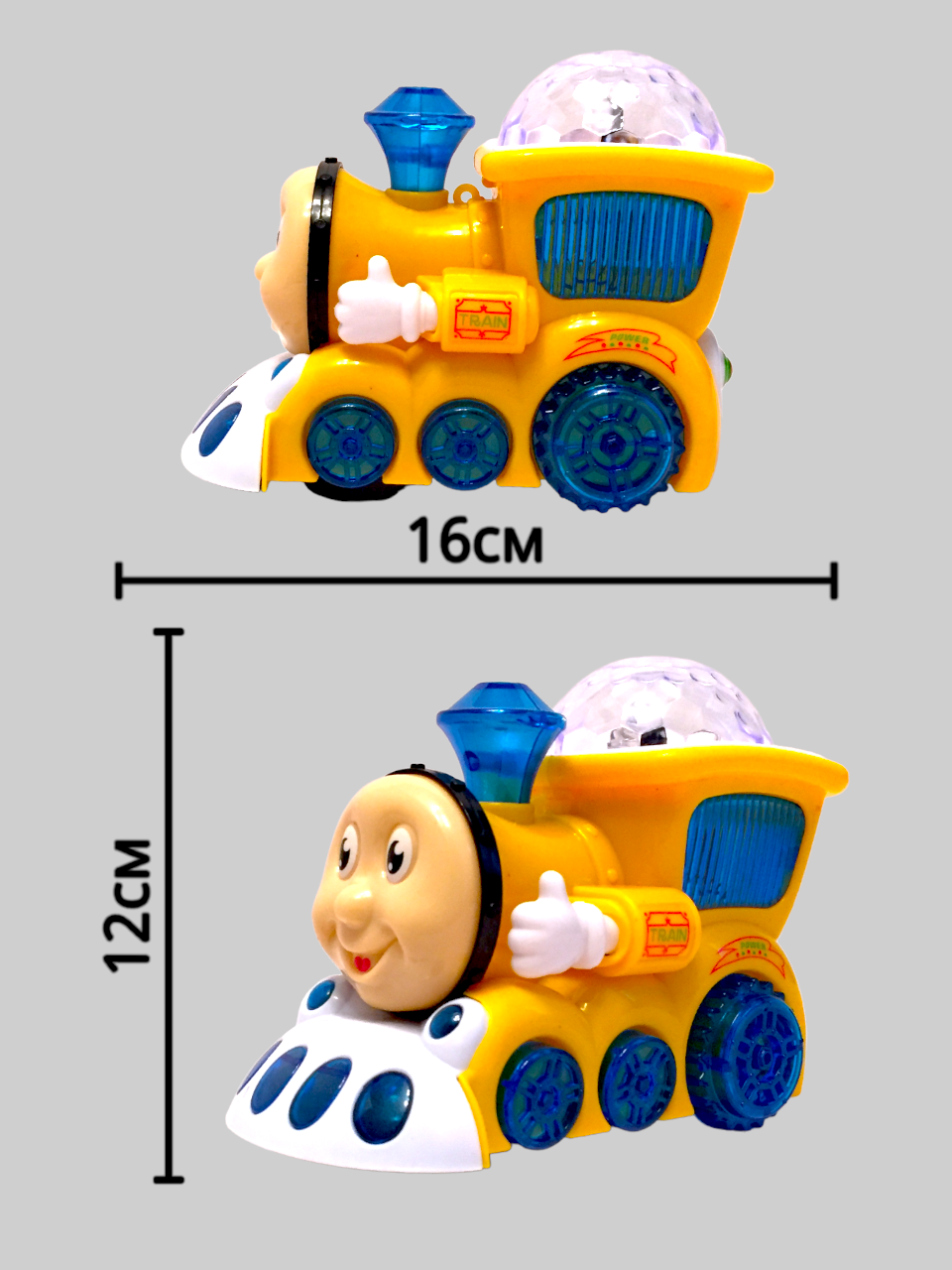 Музыкальный паровоз на батарейках "Желтый" (свет, звук, ездит, проекция) информация:
