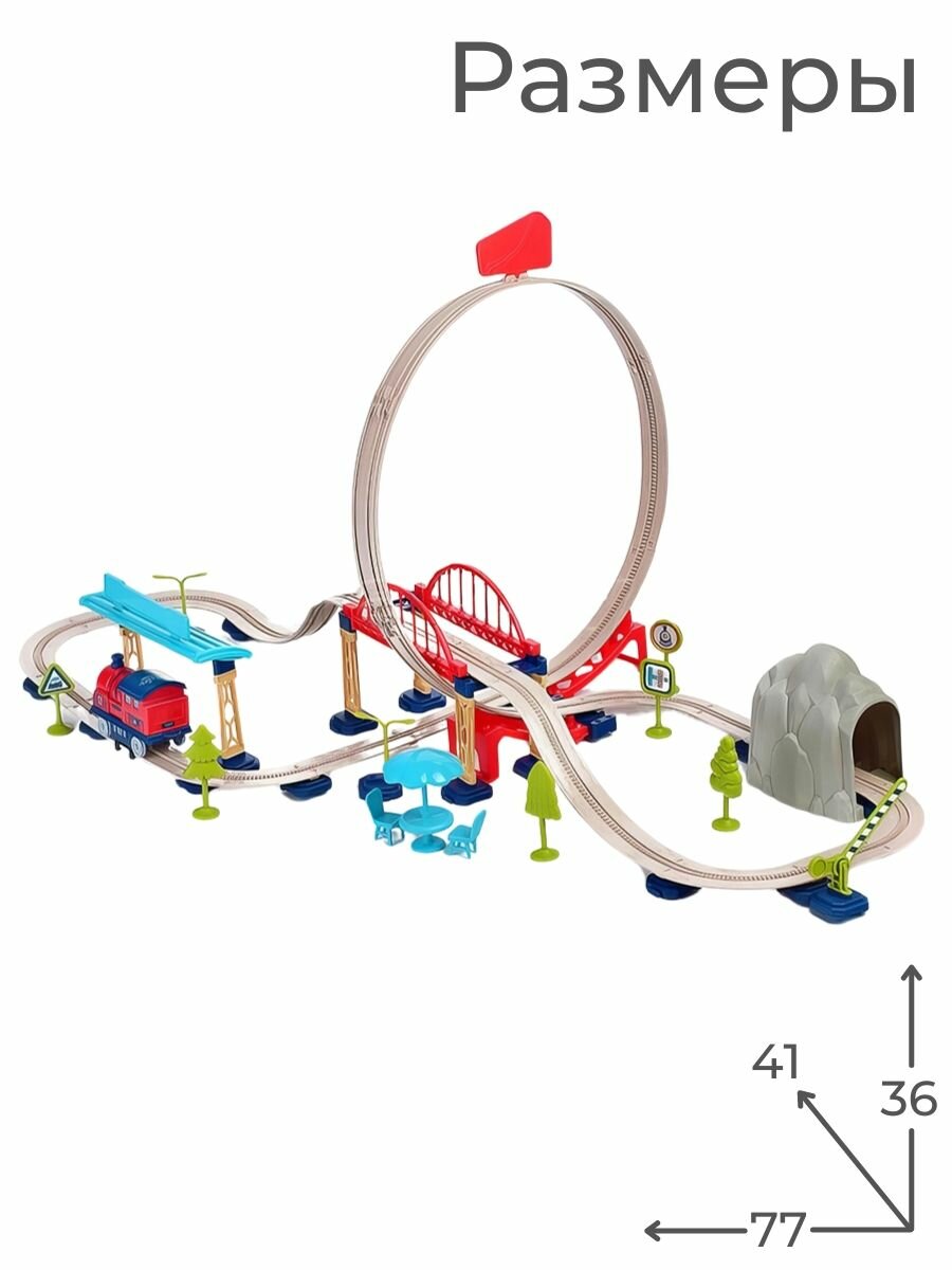 Железная дорога Поезд на батарейках для мальчиков, 77 деталей информация: