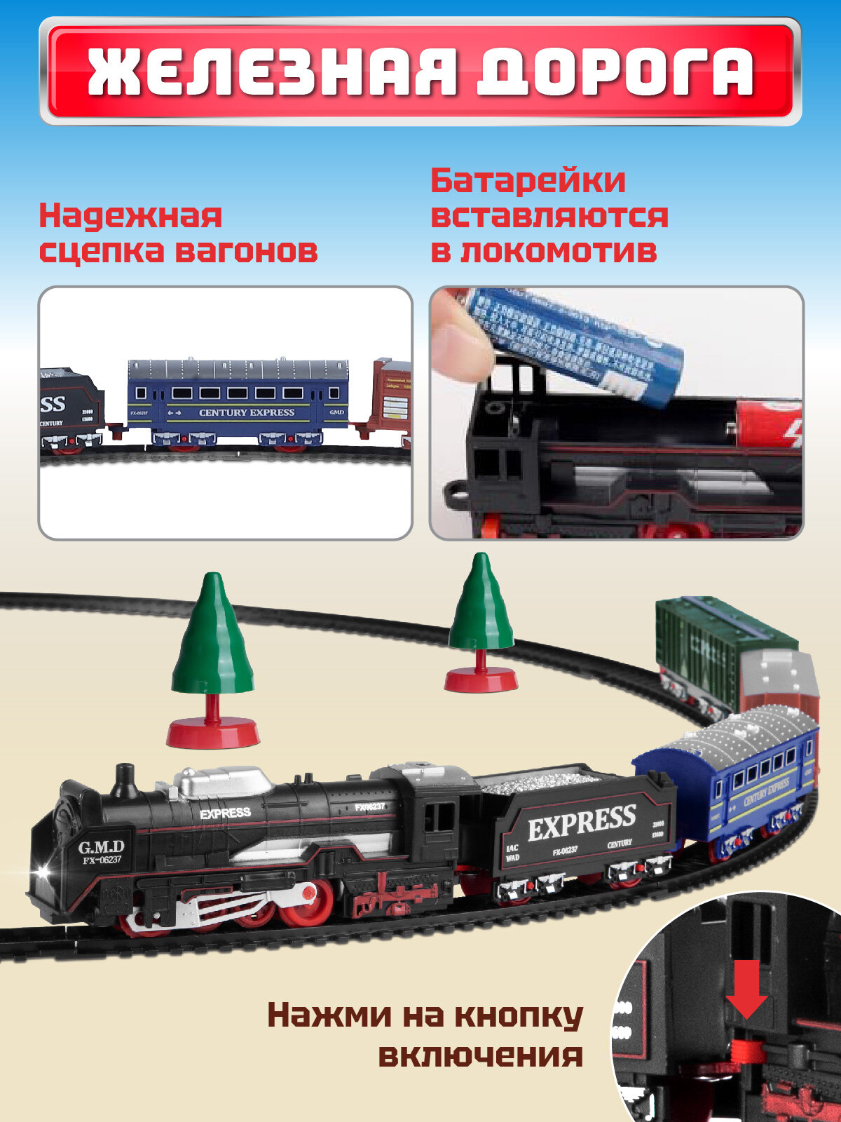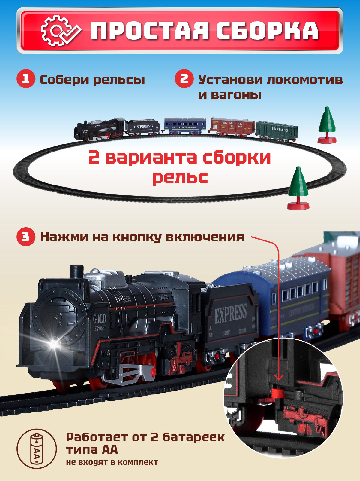Железная дорога классическая, локомотив/вагоны, игровой набор, играем в профессии, машинист поезда, свет, JB0405173 информация: