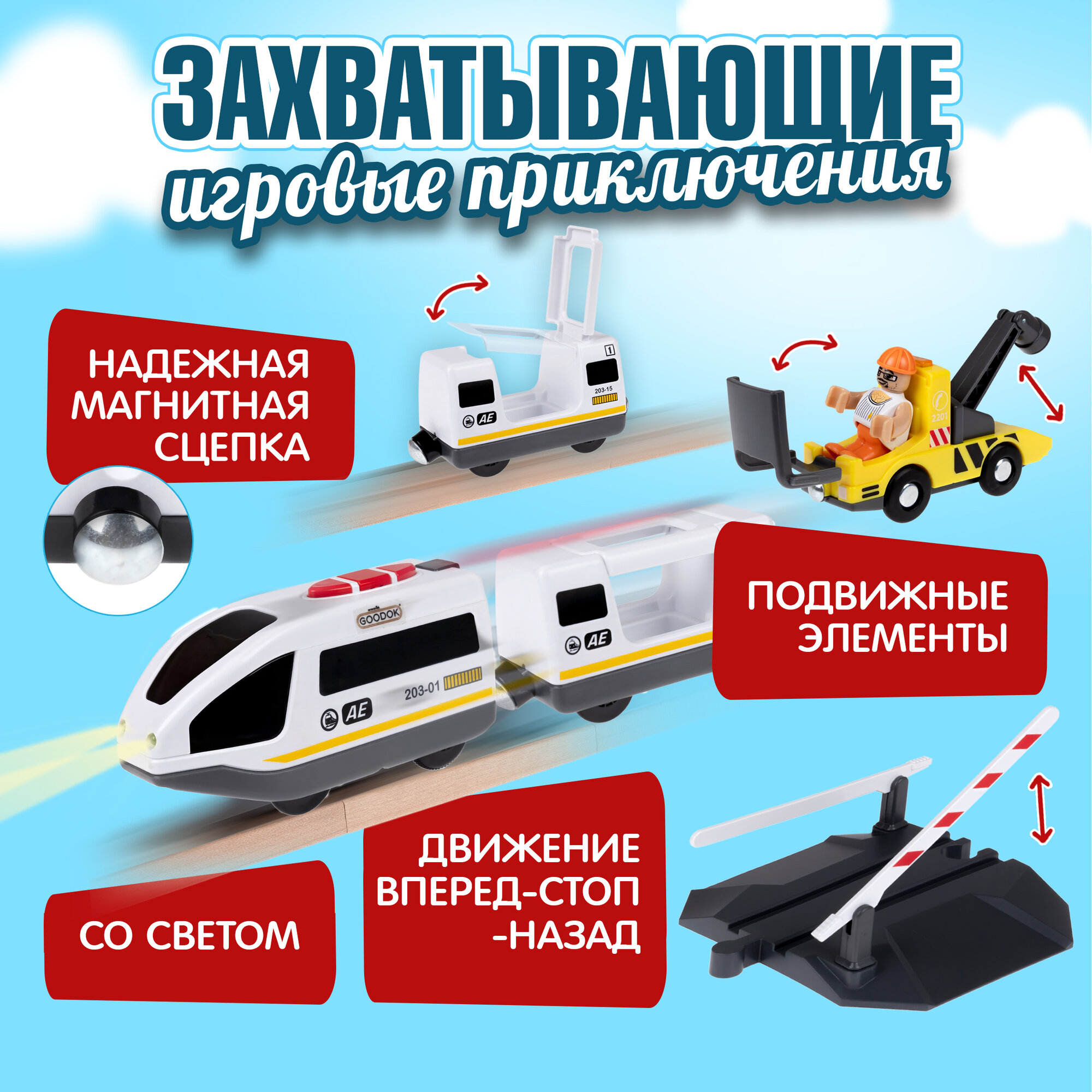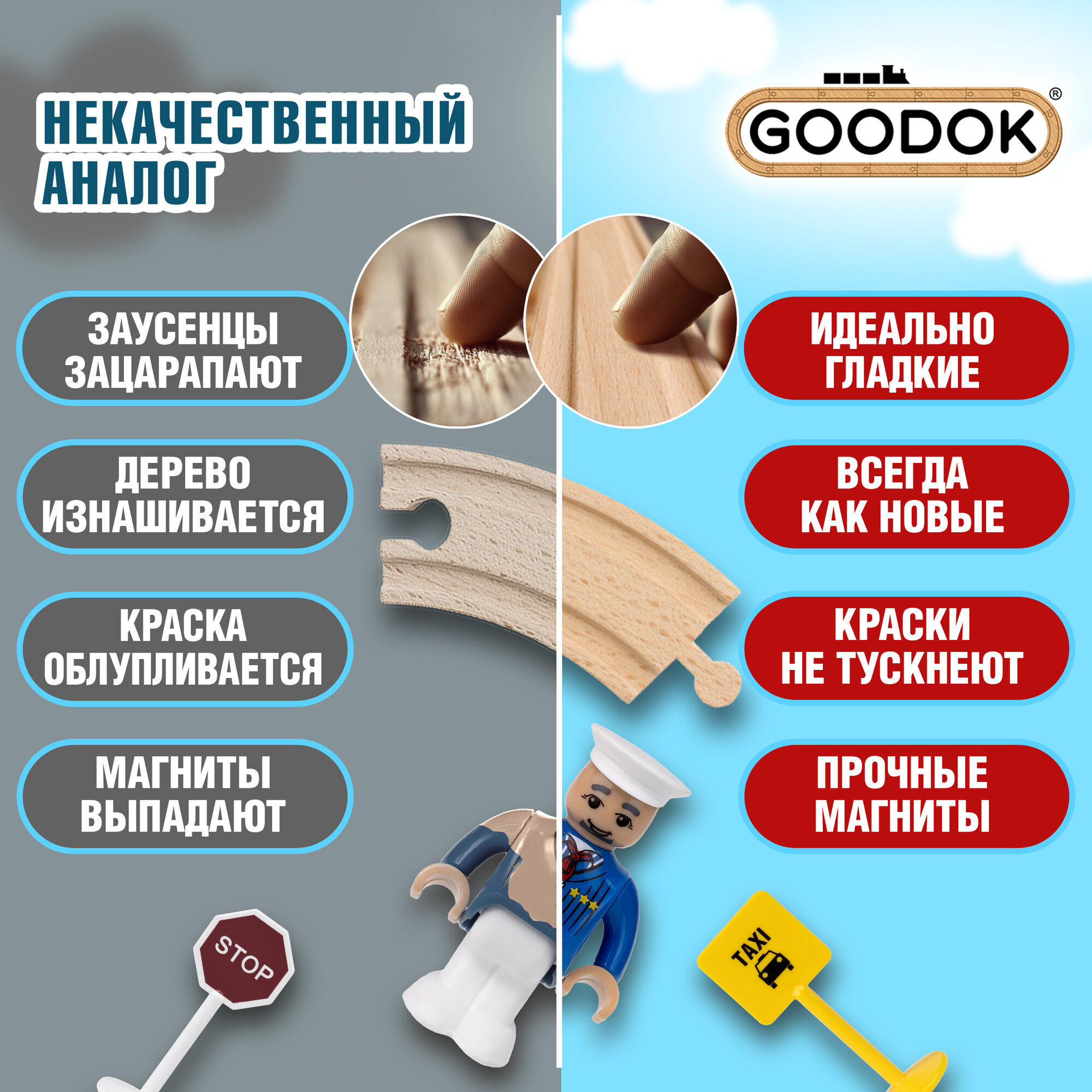 Деревянная железная дорога 1TOY GOODOK "Осторожо, переезд!" с электропоездом и аксессуарами, 35 деталей