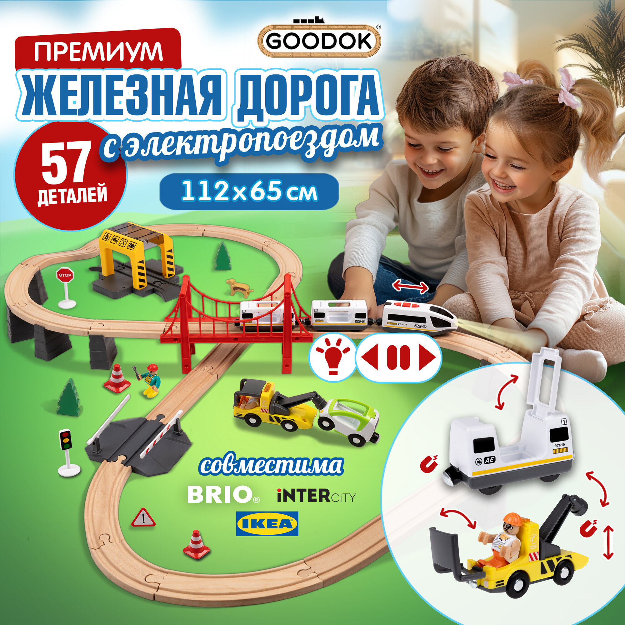 10 цен на Деревянная железная дорога 1TOY GOODOK с электропоездом, 57 элементов