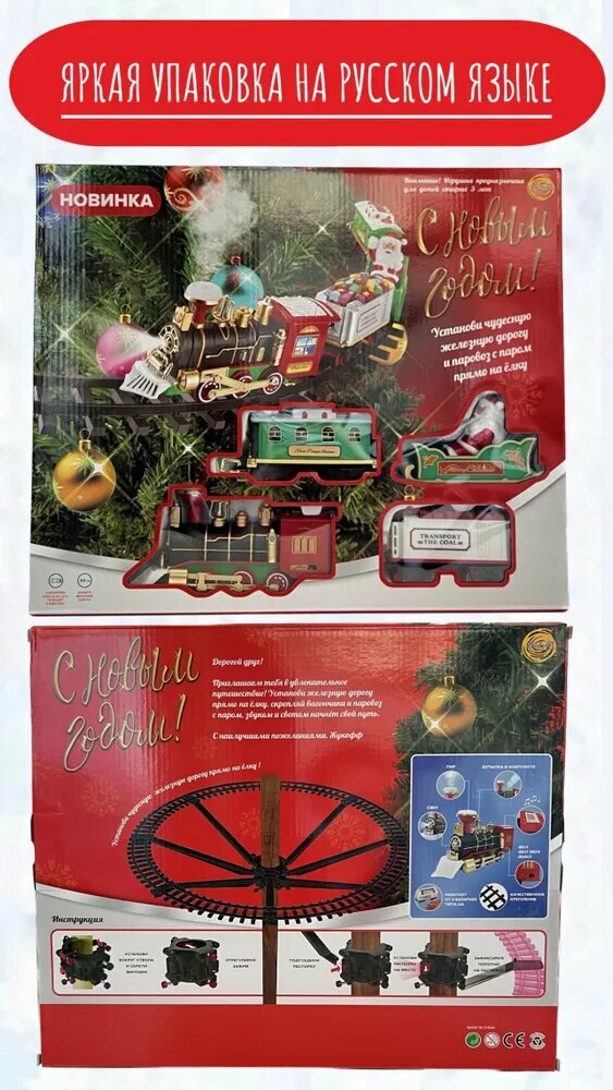Электрический рождественский поезд, электрический звук и свет, можно повесить рождественскую елку, красную информация: