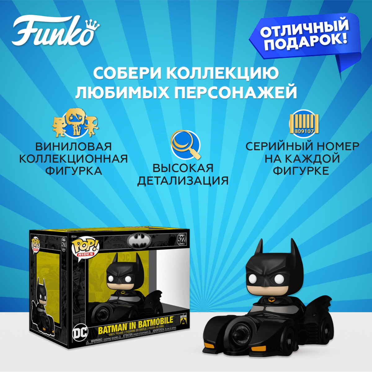 Отзывы на Фигурка Funko POP! Rides DC Batman 85th Batman in Batmobile (522) 80689
