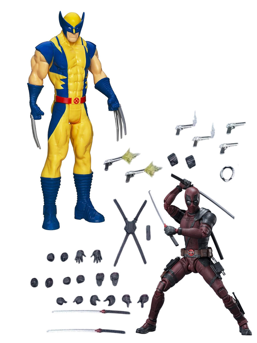 10 цен на Фигурки Росомаха и Дэдпул Марвел Люди Икс набор Wolverine Deadpool Marvel X men 15 и 28 см