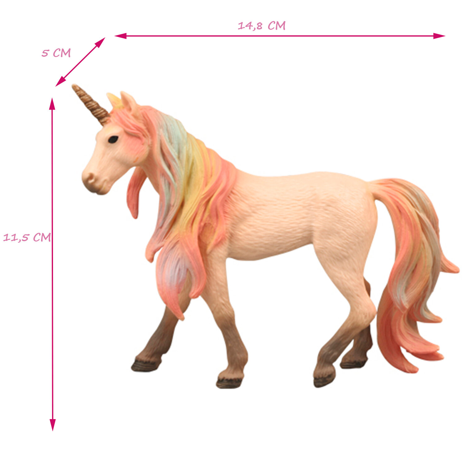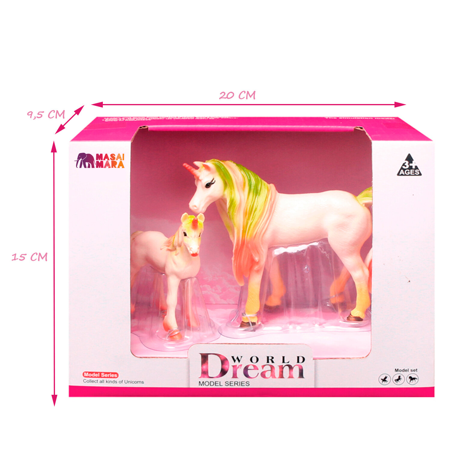 Набор фигурок серии "Мир фэнтези". Семья персиковых единорогов с розово-желтой гривой, (единорог и жеребенок-единорог) информация: